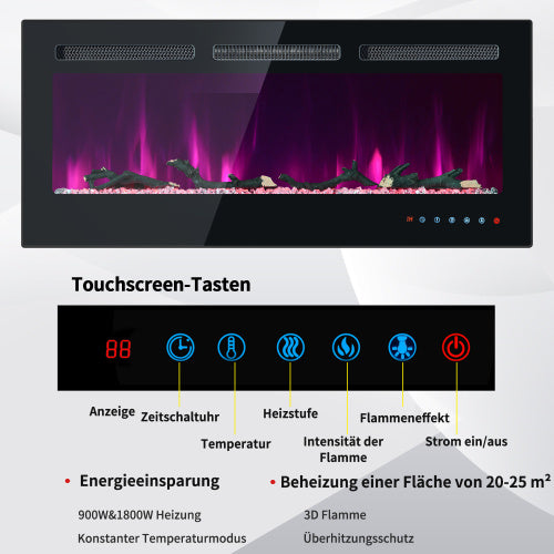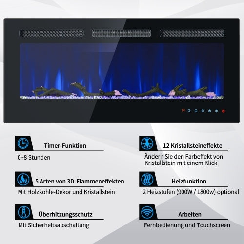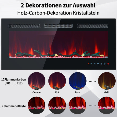 Product Name:Wand- und Einbau-Elektrokamin, 12 einstellbare Flammenfarben, verstellbarer Thermostat, mit Kristall- und Holzset, Fernbedienung und Touchscreen-Einstellungen, 900/1800 W, 42 Zoll,106.5×46.5×12cm