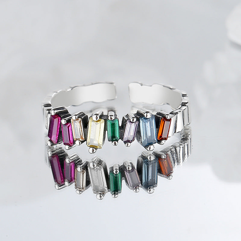S925 Sterling Silver Colorful Ladder Zircon Ring